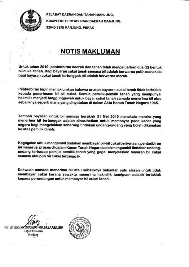 Pdtmanjung On Twitter Makluman Mengenai Pembayaran Cukai Tanah