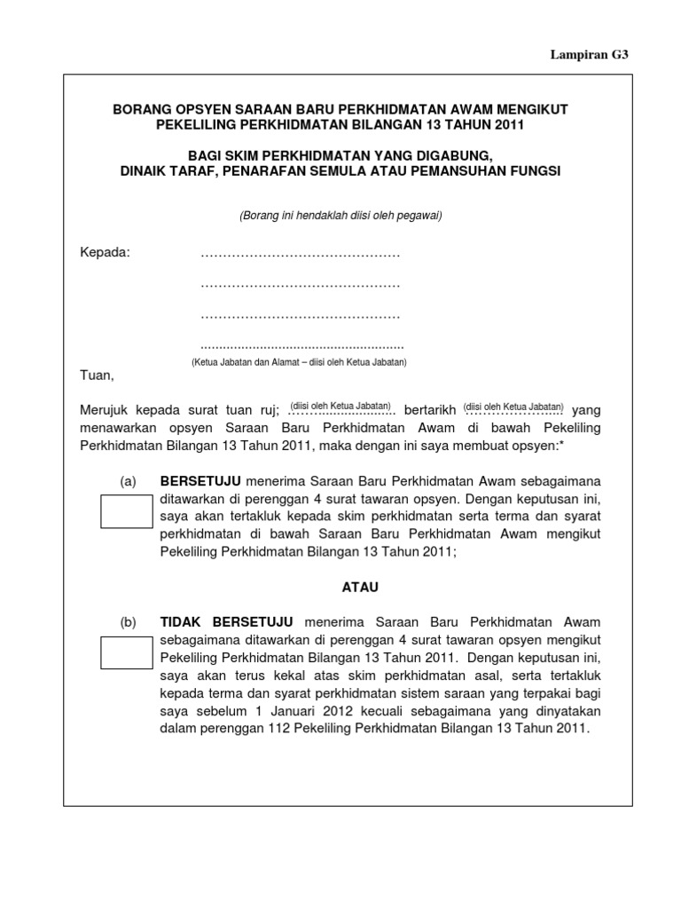 Lampiran J1 Surat Tawaran Opsyen Saraan Baru Perkhidmatan Awam Kepada Pegawai Tetap Mengikut Pekeliling Perkhidmatan Bilangan