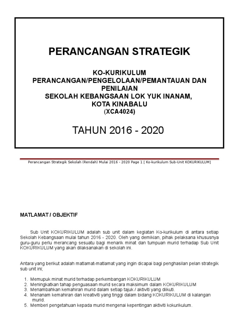Pdf Pelan Perancangan Strategik Bidang Ko Kurikulum 2016 2020 Fouzi Arshad Academia Edu
