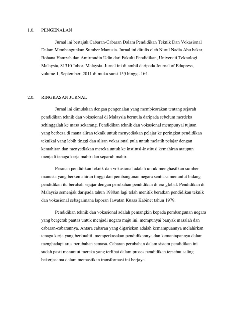 Pdf Tevt Di Malaysia Cabaran Dan Harapan