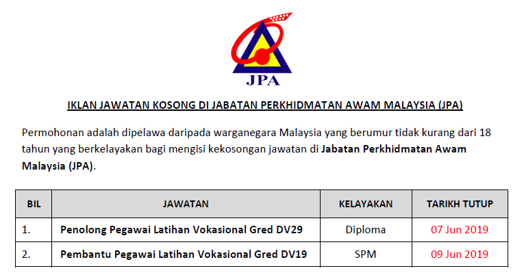 Jawatan Kosong Di Jabatan Perkhidmatan Awam Jpa Penolong Pegawai Latihan Vokasional Dv29 Jobcari Com Jawatan Kosong Terkini