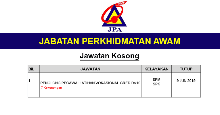 Kekosongan Jawatan Di Jabatan Perkhidmatan Awam Penolong Pegawai Latihan Vokasional Gred Dv19 Semakjawatan Com Jawatan Kosong Terkini