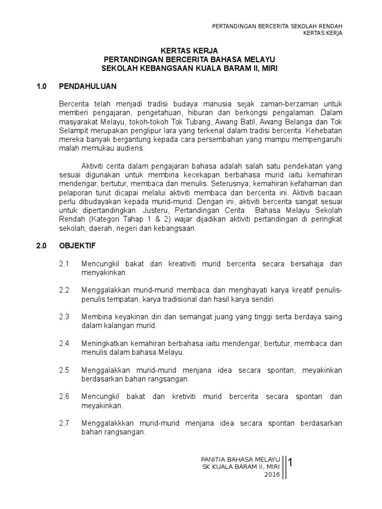 Kertas Kerja Pertandingan Bercerita Skkb2 2016