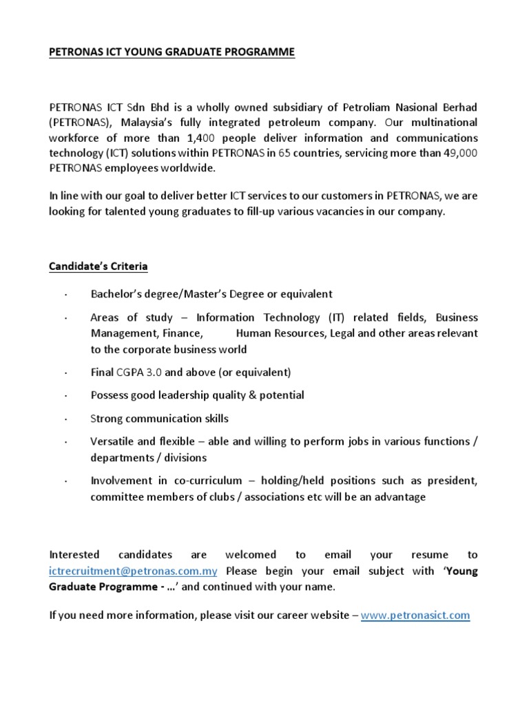 Talentcorp Malaysia On Twitter Fresh Graduates Applications Open For Petronas Ict S Young Graduate Programme Apply At Https T Co Za8nqmzfix Https T Co Dsyseojfdp