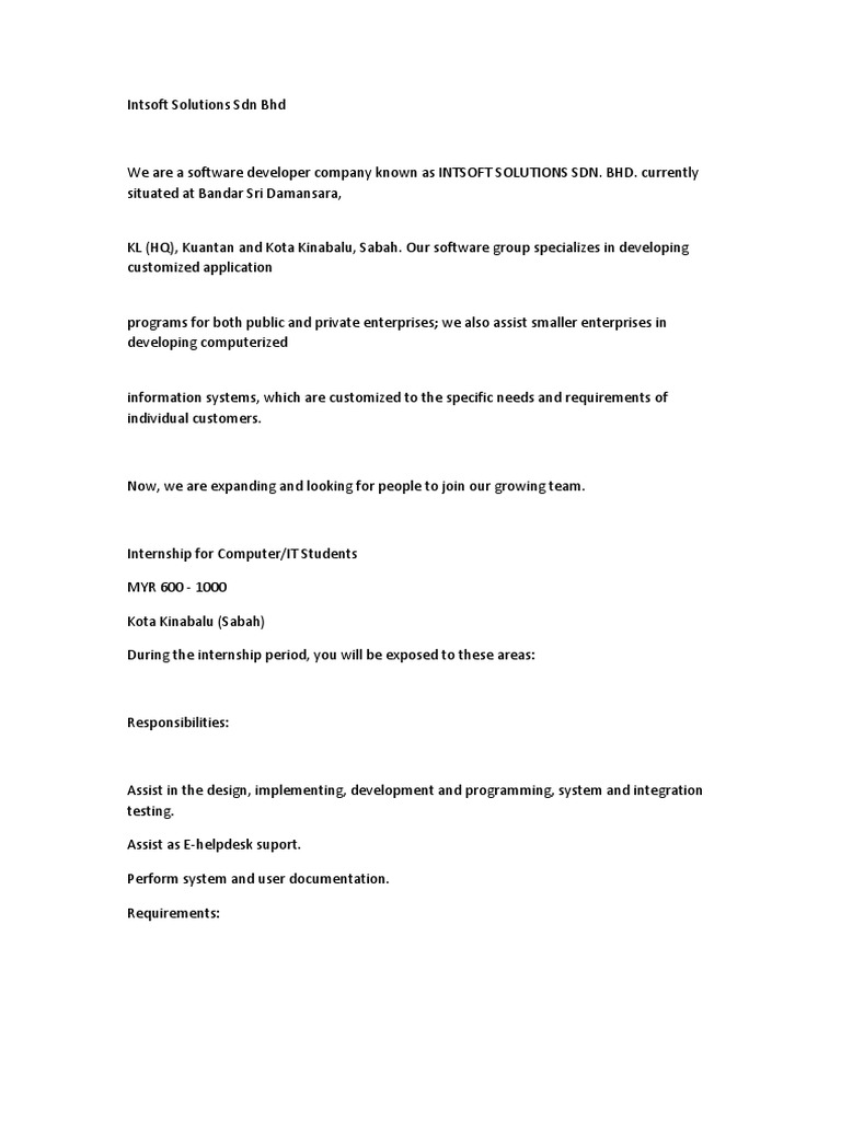 Intsoft Solutions Sdn Bhd Internship Bachelor S Degree