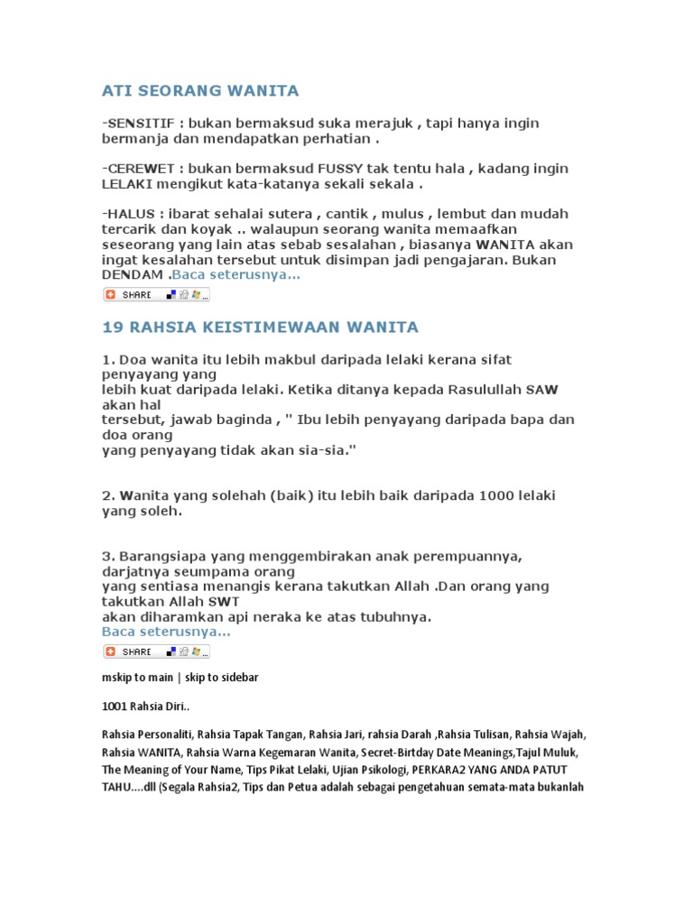 Rahsia Wanita Yang Haram Diketahui Oleh Lelaki Encikshino Com