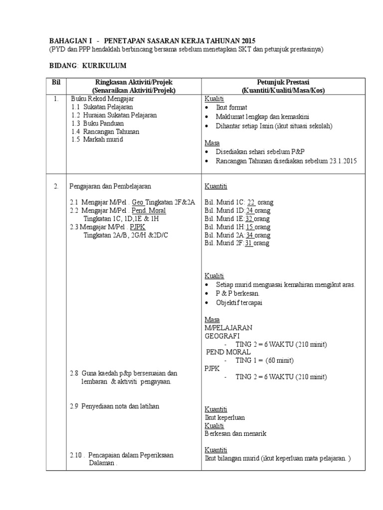 Contoh Sasaran Kerja Tahunan Skt 2015