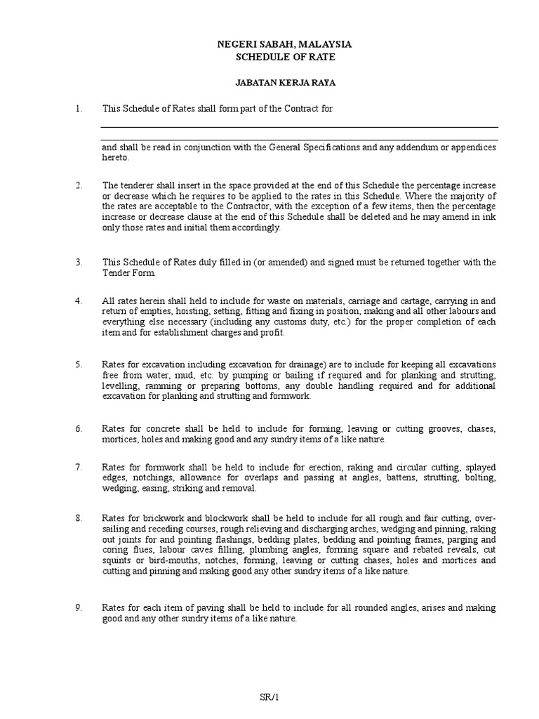 314232618 Schedule Of Rate Jkr Malaysia Pdf Negeri Sabah Malaysia Schedule Of Rate Jabatan Kerja Raya 1 This Schedule Of Rates Shall Form Part Of The Course Hero