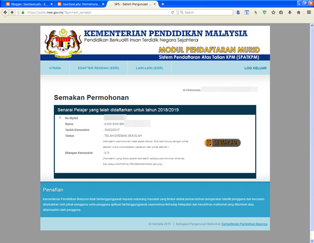 Sawsawlady Semakan Permohonan Pendaftaran Untuk Kemasukan Murid Tahun Satu Sesi Persekolahan 2017 Dan 2018