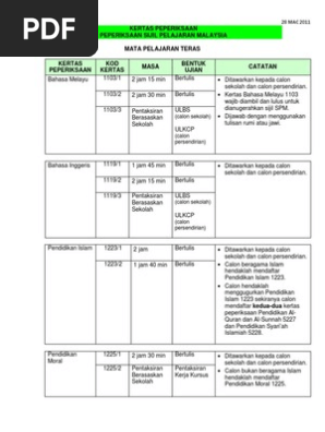 Senarai Mata Pelajaran Sijil Pelajaran Malaysia Spm 2013