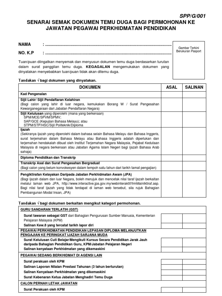 Spp G 001 Senarai Semak Temu Duga Ppp