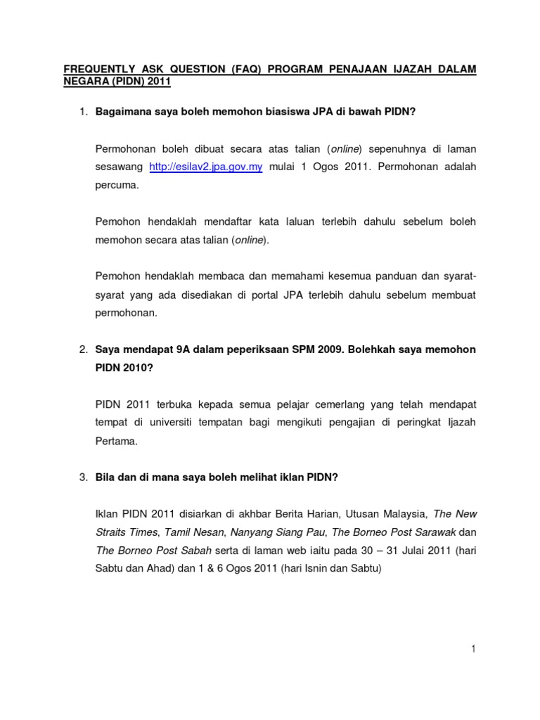 Frequently Ask Question Faq Program Penajaan Ijazah Dalam Negara Pidn 2011