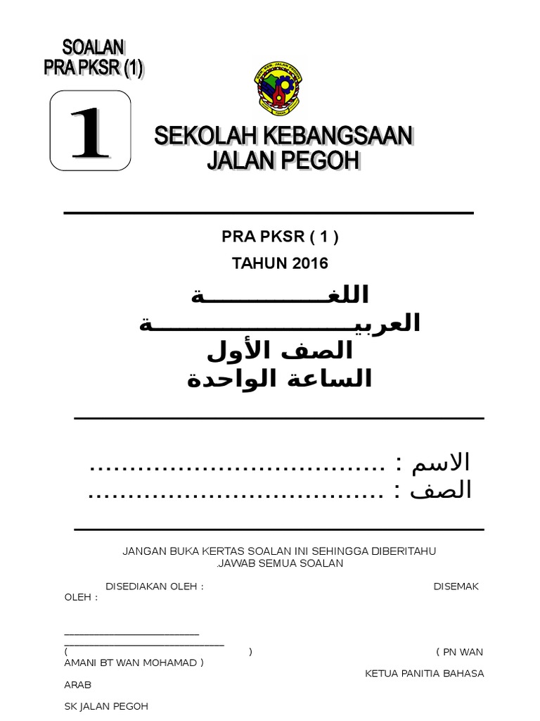 Soalan Pksr 2 2016 Bahasa Arab Dan Jawi 1 6 Bpi Waktu Solat Dot Net