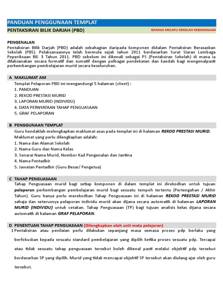 Panduan Penggunaan Templat Pelaporan Pentaksiran Bilik Darjah Pbd
