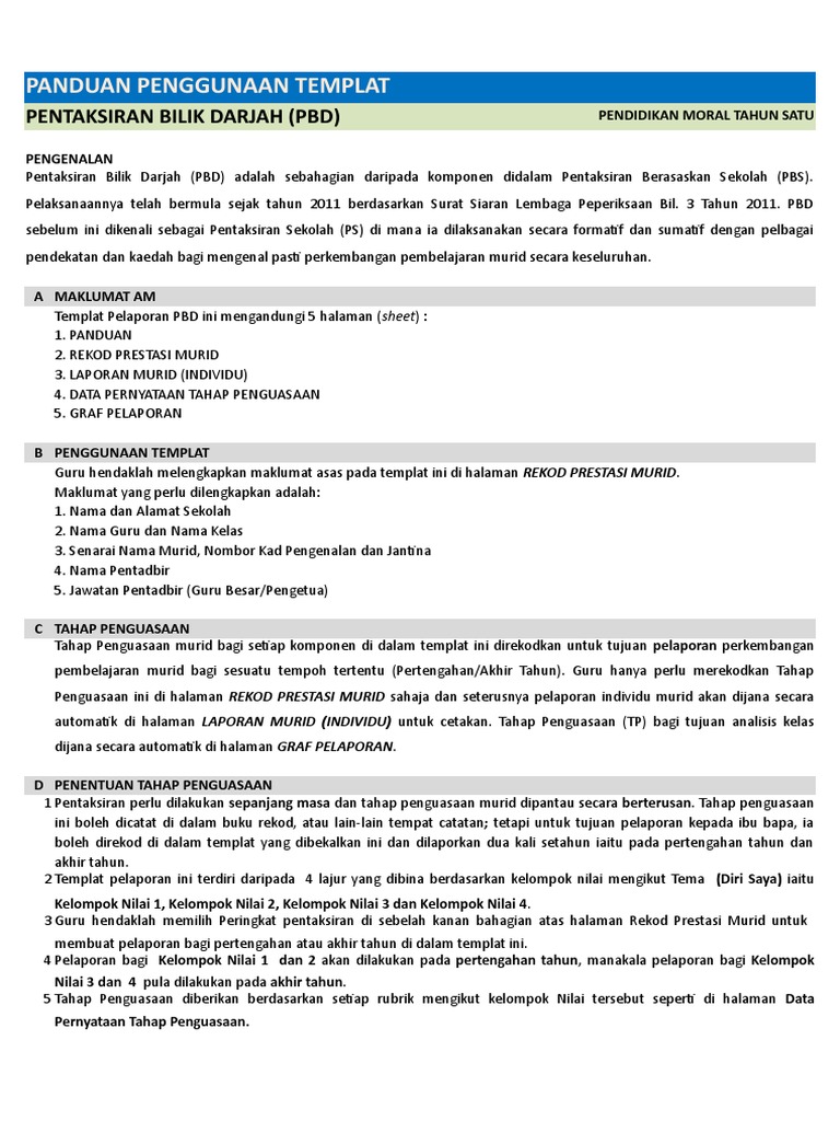 Panduan Penggunaan Templat Pelaporan Pentaksiran Bilik Darjah Pbd