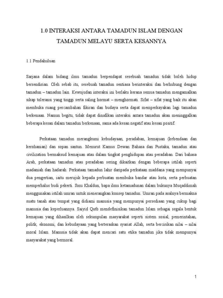 Interaksi Antara Tamadun Islam Dengan Tamadun Melayu Serta Kesannya