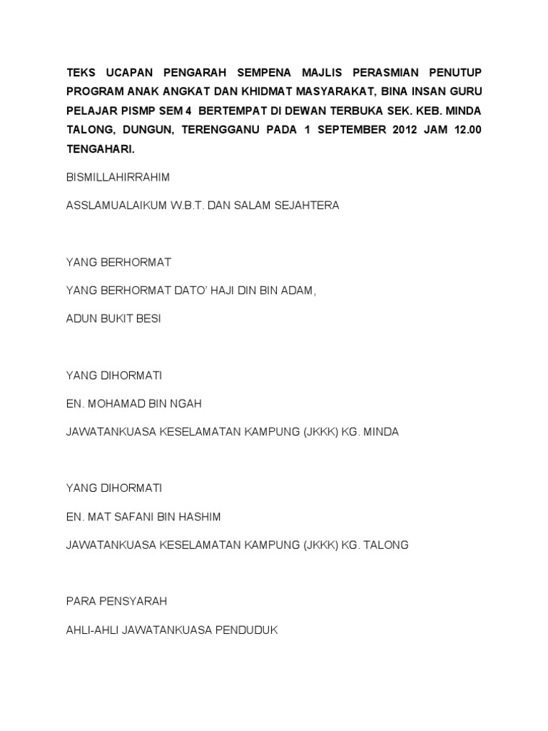 Doc Contoh Teks Ucapan Nc Majlis Perasmian Penutup Program Solehulhafiz Suhaimi Academia Edu