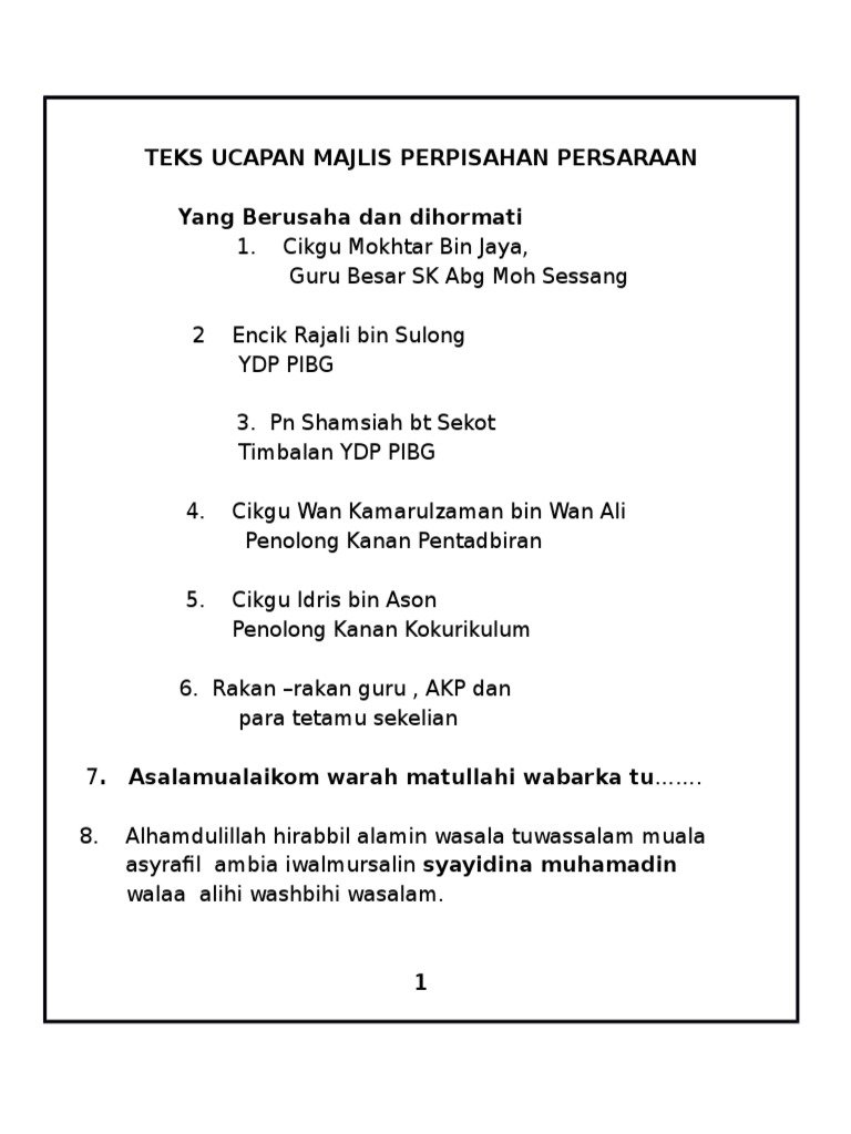 Doc Contoh Ucapan Wakil Murid Untuk Majlis Persaraan Linda Husin Academia Edu