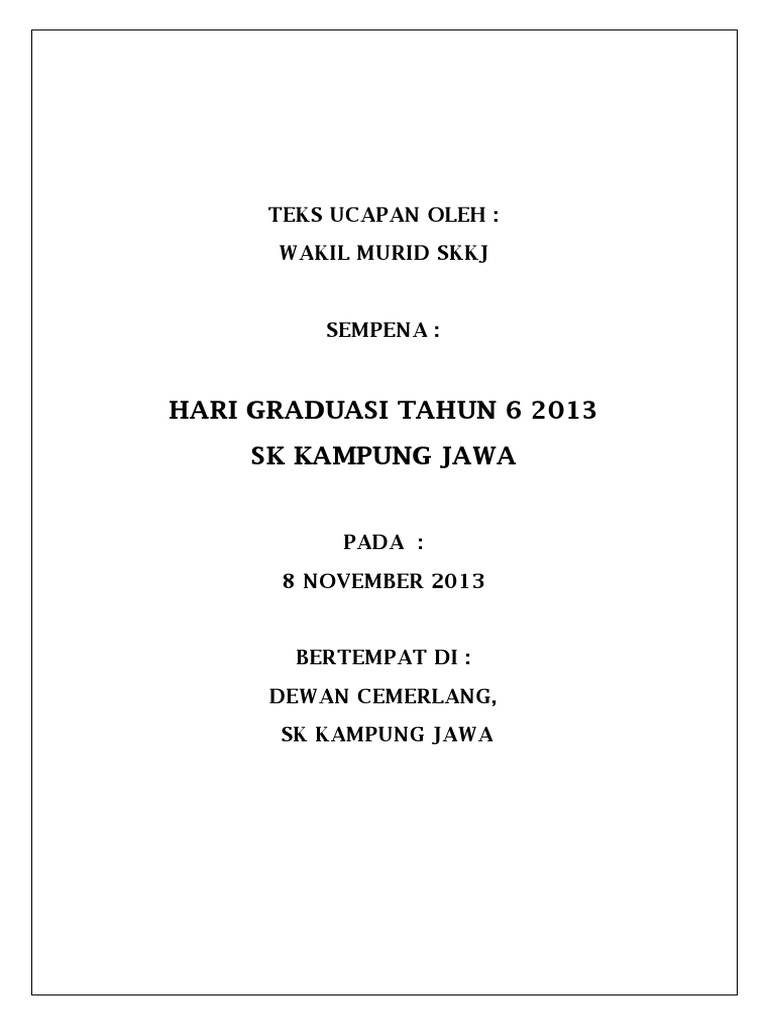 Teks Ucapan Wakil Murid Graduasi Tahun 6