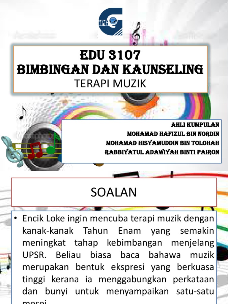 Terapi Muzik Dalam Bimbingan Pptx