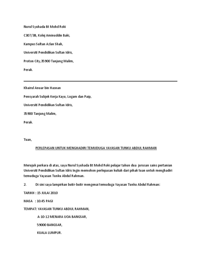 Surat Rasmi Pengecualian Kuliah Surat Rasmi D