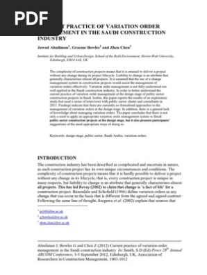 Current Practice Of Variation Order Management In The Saudi Construction Industry Saudi Arabia Design