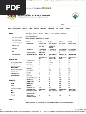Malaysia Marine Water Quality Criteria And Standard Department Of Environment Malaysia Water Quality Chemical Substances