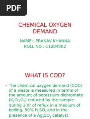 Biochemical Oxygen Demand Bod And Chemical Oxygen Demand Pdf